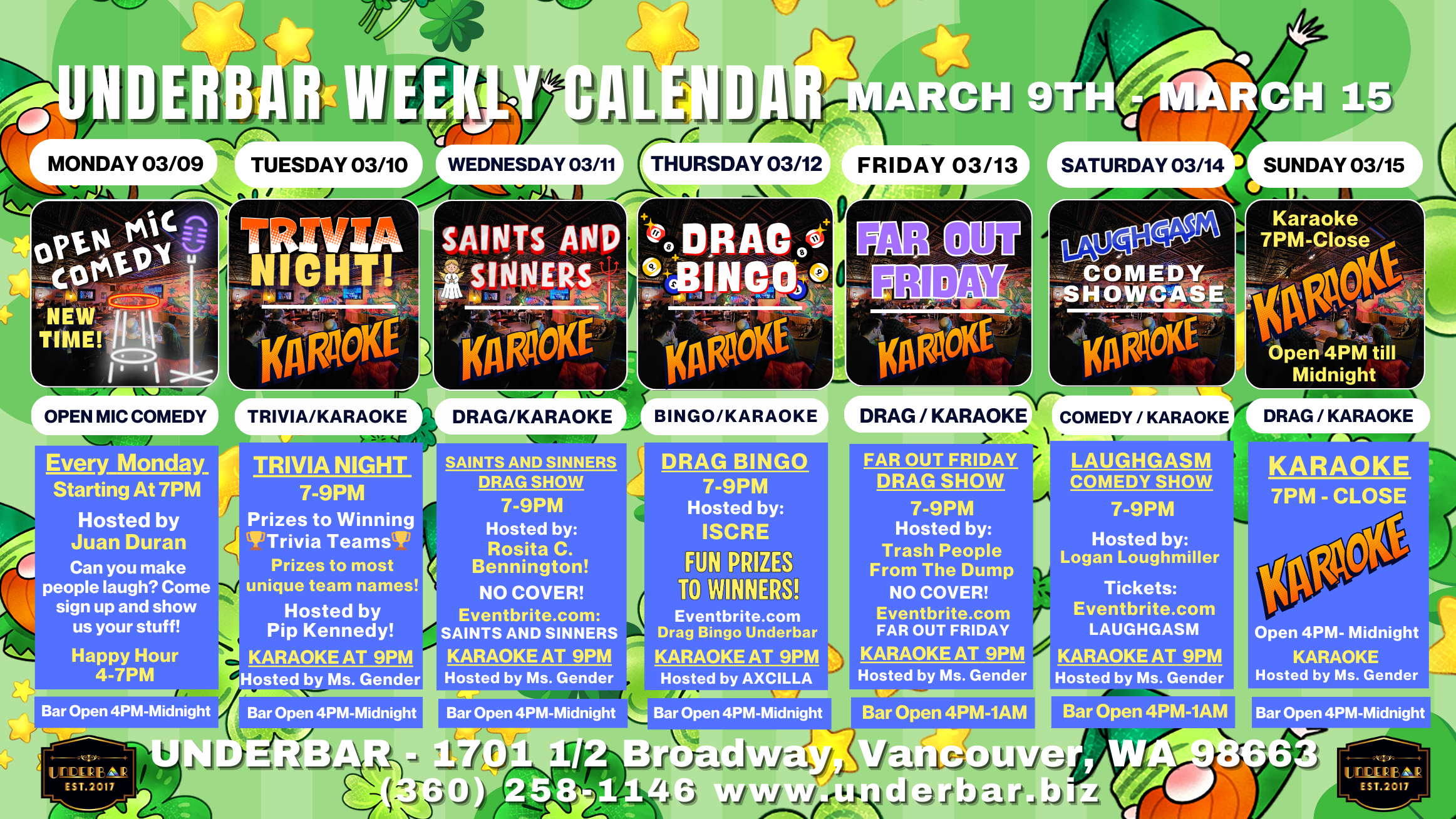 UnderBar Calendar is updated every Monday!